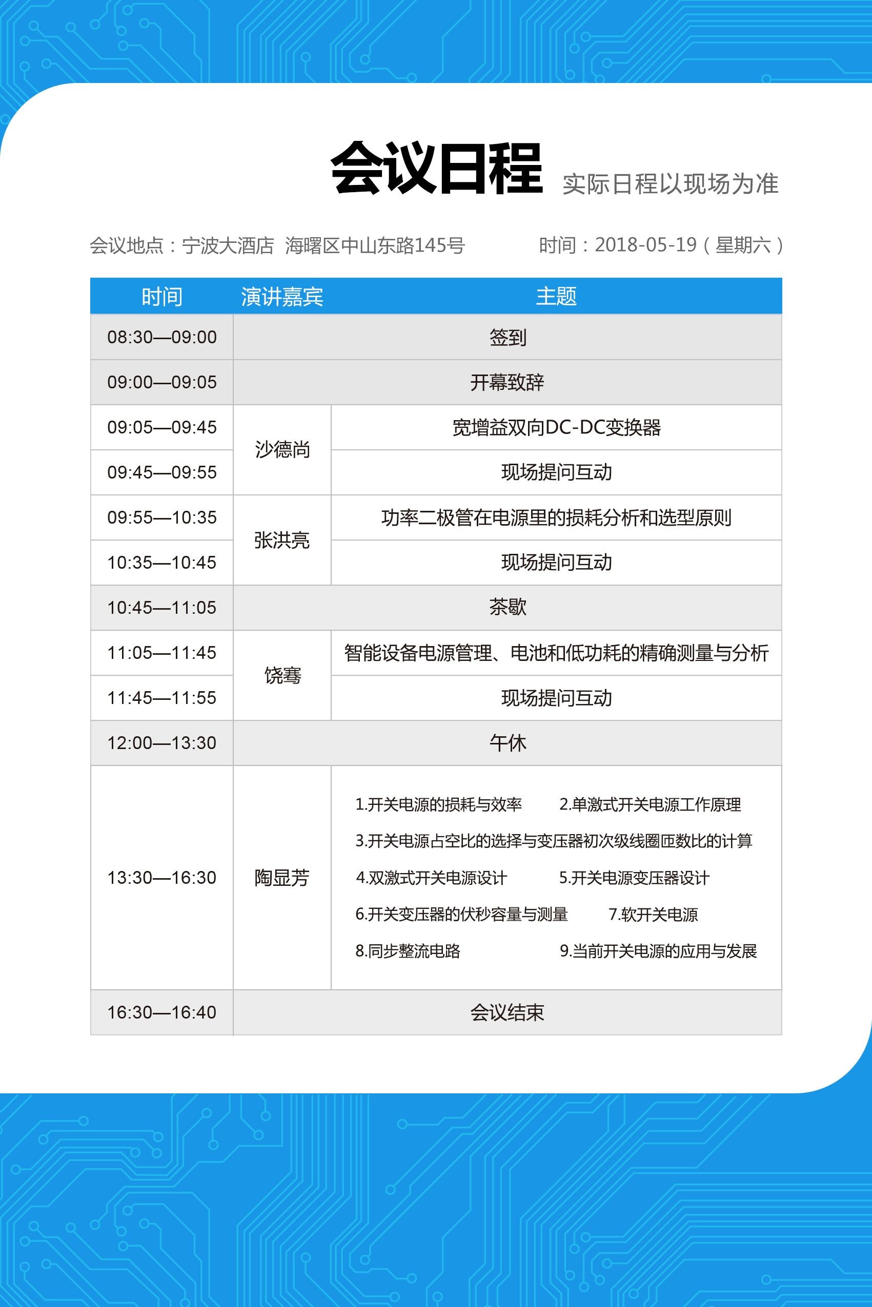 2017年5月19日,2018電源網工程師巡回研討會——寧波站,即將在寧波市寧波大酒店鳴鑼開始!期待您的參加!