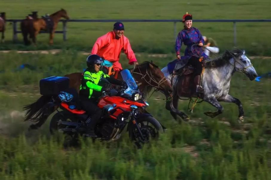 當重機車隊一路騎行在錫林郭勒大草原的旅程中,每到一處,懷著新奇的心情和眼神錫盟民眾都在夾道歡迎,紛紛用手機拍攝并傳播重機騎行車隊的颯爽風姿;在重機機車停靠的地方,當地民眾熱情地參觀合影與騎手交流重機文化;鳳凰馬場上,重機與蒙古馬,現代騎手與草原男兒你追我趕,草原文化與重機文化相互碰撞與交融,草原兒女深刻感受到現代制造的強大,重機騎士也感受到了一往向前的草原精神;烏里雅斯太的星空音樂節,東烏珠穆沁旗鎮的居民驅車而來,與重機騎手們一起感受草原音樂節的激情釋放;珠恩嘎達布其口岸附近的邊民互市,重機騎手采購了大量蒙古國客商售賣的毛毯、皮靴、羊絨等制品,交流、交易、交心,一場多樣的的騎行體驗之旅在上演,一個深度融合的重機活動烙印在人們彼此的心中。