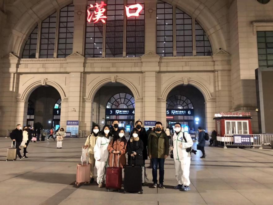 封城前夜,財新記者在漢口火車站合影