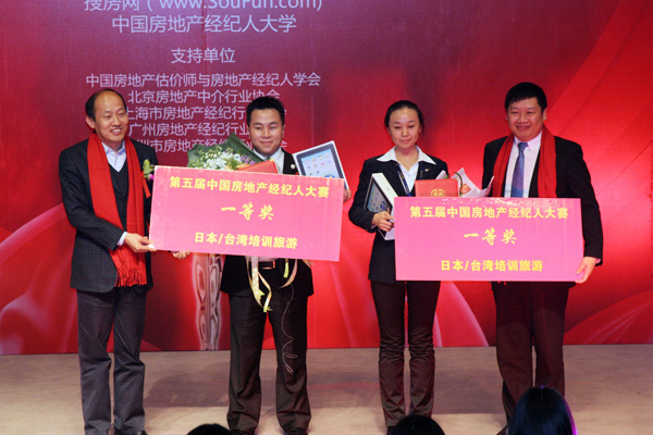 北京2011年1月13日電 /美通社亞洲/ -- 由搜房網(wǎng)、中國房地產(chǎn)經(jīng)紀人大學主辦的第五屆中國房地產(chǎn)經(jīng)紀人大賽全國總決賽暨頒獎典禮1月12日在北京國際會議中心舉行。大賽吸引了全國54個城市近4.5萬名經(jīng)紀人參與,經(jīng)過近2個月的激烈角逐,來自北京、上海、深圳、廣州、南京、重慶、濟南、常州等8個城市的20名選手脫穎而出,晉級全國總決賽。最終鏈家地產(chǎn)夏興輝和我愛我家周榮榮分獲男女冠軍,贏得赴臺灣/東京培訓機會。頒獎典禮現(xiàn)場,與會嘉賓及全國600名經(jīng)紀人共同見證了中國房地產(chǎn)經(jīng)紀人大學職業(yè)技能認證體系的啟動。