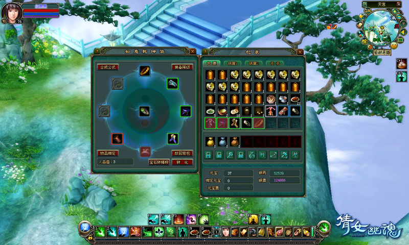 如意乾坤袋的好處還在于隨身攜帶,任何時間都能使用,無需到 NPC 那里合成。相比《暗黑破壞神2》,《倩女幽魂 Online》的如意乾坤袋無需占用包裹,直接成為包裹界面的功能。《倩女幽魂Online》的主策劃還提到一個新的綠色概念:為了防止玩家合成失敗帶來過多的挫折感,《倩女幽魂 Online》還增加了人品值的設計。玩家如果合成失敗,人品值就會增加,合成成功率就會大大增加,玩家們不再為概率傷心欲絕。同時,合成還受幸運值的影響,也就是類似《暗黑破壞神2》的 MF(Magic Find)值,使乾坤袋的可玩性大大增加,這類的幸運值累加也可以通過野外刷裝備而得到,再也不是 RMB 玩家的專利,讓極品來得更加綠色和平衡。