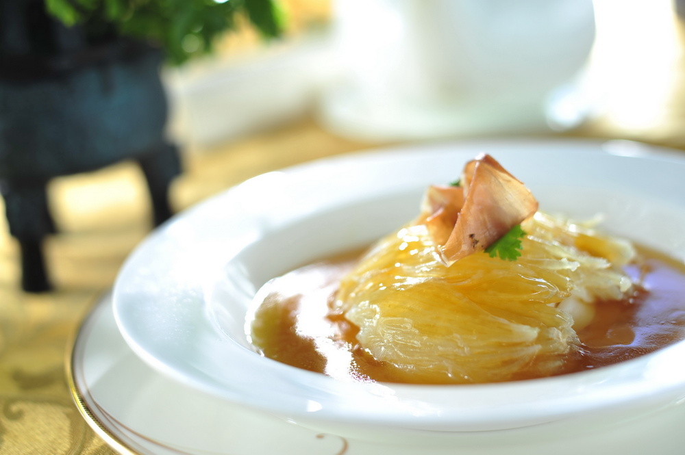 君綽軒國(guó)慶煙花匯演套餐 A -- 金陵片皮乳豬、菜膽肘子片燉鮑翅、蠔皇南非六頭鮑扣遼參、頭抽星斑扒、蟹黃竹笙露筍卷、蒜香脆皮雞、鮮蝦荷葉飯、生磨核桃露湯丸、水果拼盤。每位港幣1,188元。