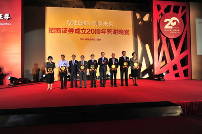 深圳2011年8月8日電 /美通社亞洲/ -- 8月8日,招商證券在大中華喜來登酒店隆重舉行“專注此刻,創(chuàng)想未來”20周年慶典,在熱烈慶祝招商證券成立20年的同時,向20年來一直關(guān)心、支持公司發(fā)展的各級政府、監(jiān)管機構(gòu)和行業(yè)協(xié)會、股東單位、合作伙伴、公司客戶以及各界朋友表示衷心的感謝。