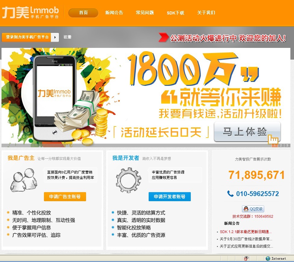 活動詳情,請見力美手機廣告平臺官網(wǎng):http://www.lmmob.com/ploy.jsp