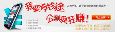 北京2011年10月24日電 /美通社亞洲/ -- 中國領(lǐng)先的移動媒體和社交媒體營銷公司力美廣告宣布,應廣大Android開發(fā)者的強烈要求,其手機廣告平臺“我要有錢途”活動將延長至12月25日。