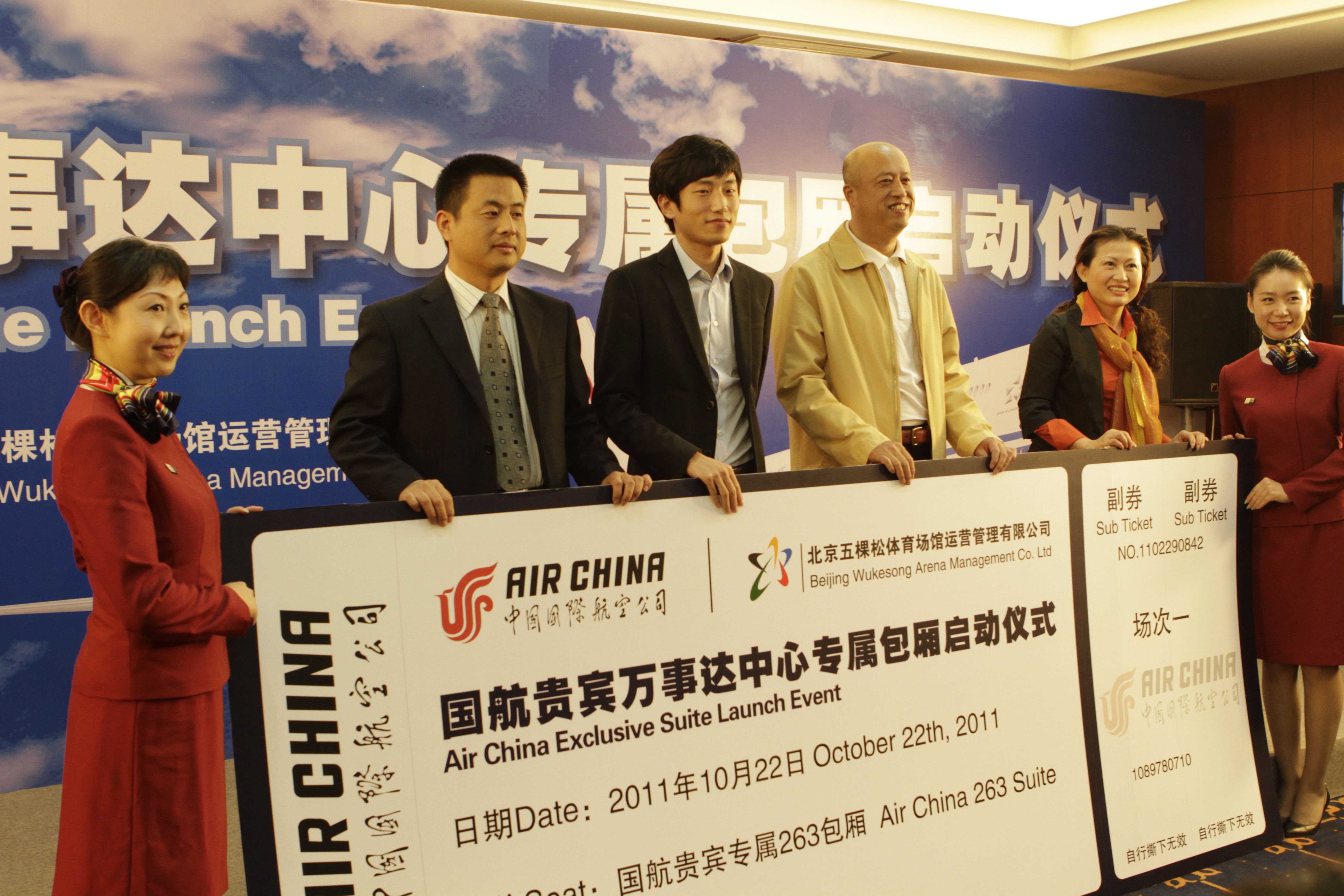 北京2011年10月24日電 /美通社亞洲/ -- 中國國際航空公司(以下簡稱“國航”)同萬事達中心(原北京五棵松體育館)合作設立“國航貴賓萬事達中心專屬包廂”啟動儀式日前(10月22日)在萬事達中心舉行。國航有關負責人在啟動儀式上表示,除了國航知音會員及高端企業客戶群體外,包廂資源還將被用來積極參與公益事業,孤兒、貧困兒童及家庭等弱勢群體未來也將有機會坐進包廂觀看適合他們的體育比賽和文化演出。