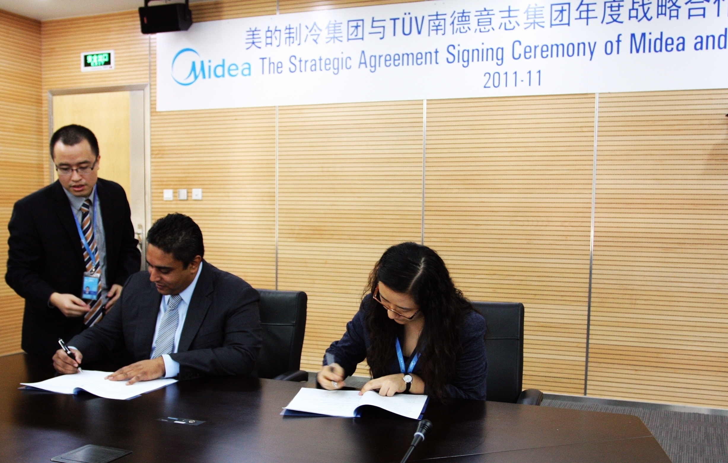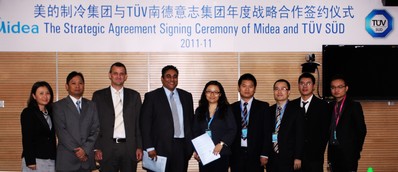 廣州2011年11月14日電 /美通社亞洲/ -- 2011年11月3日,TUV 南德意志集團(以下簡稱“TUV SUD”)全球產品服務部首席執行官 Ishan Palit 與美的集團國際事業部副總裁劉敏女士在順德北滘美的集團總部就雙方未來的合作模式達成戰略合作協議。這是繼去年九月份 TUV SUD 與美的集團簽署全方位戰略合作協議之后,雙方再一次深入合作。此次合作協議的成功署,進一步擴大雙方合作的領域,TUV SUD 將繼續致力于短美的品的認證周期,加海外管,幫助美的品在達地區的商業滲透,拓展海外市