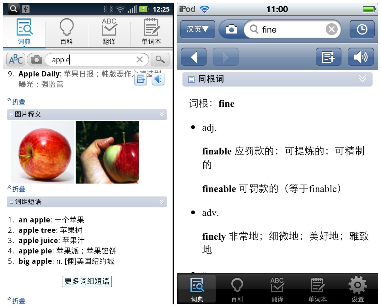 在此次升級后,有道詞典桌面版和手機版、Pad 版的釋義數據完全打通。也就是說,當用戶使用 iPhone、Android、iPad 等版本的有道詞典,也能獲得同樣專業權威的查詞體驗(圖1)。