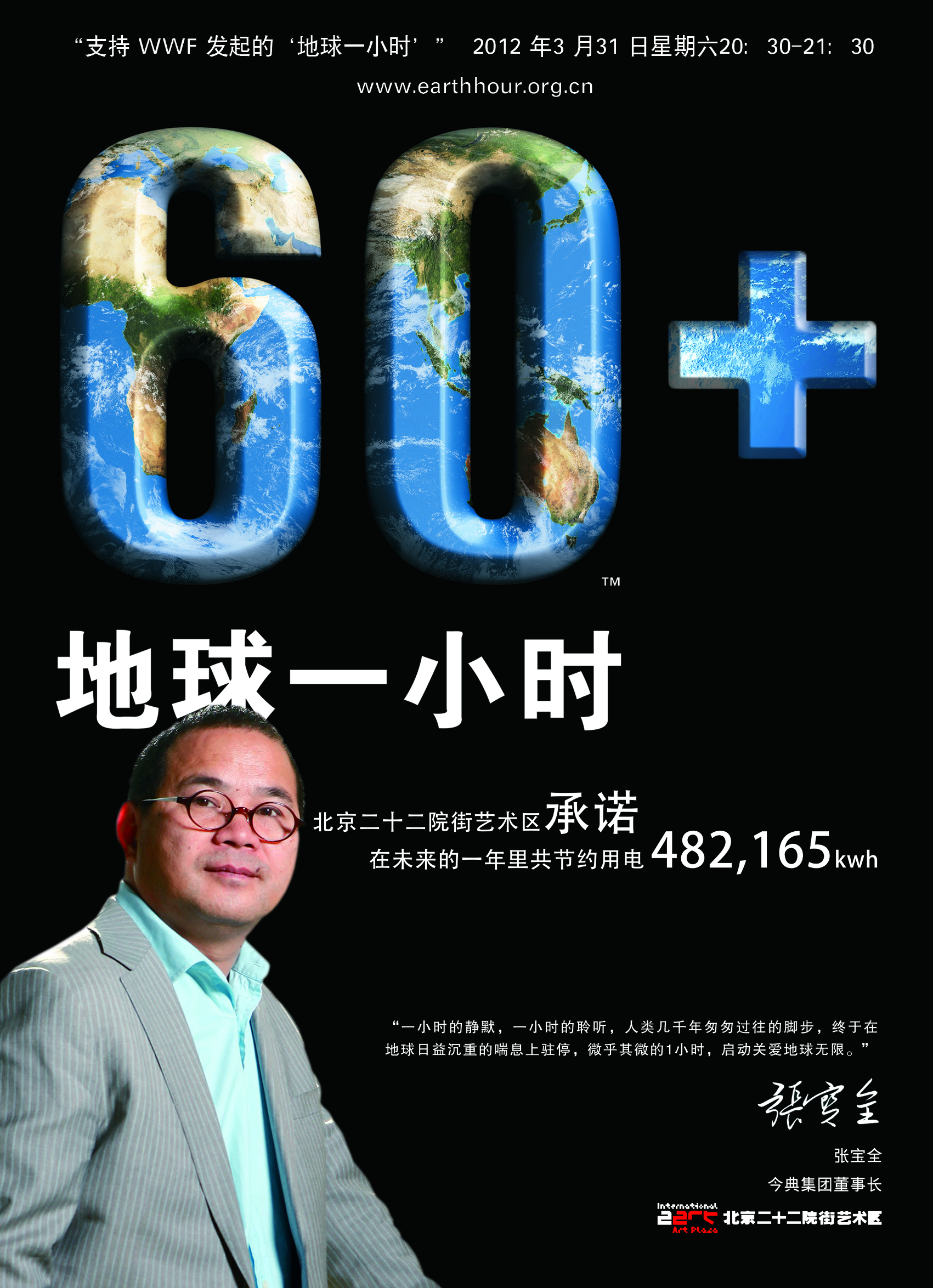 地球一小時(shí)是WWF發(fā)起的一個(gè)全球性的倡議,倡議全球個(gè)人、商業(yè)組織以及政府部門為了地球環(huán)境做出一個(gè)行為改變的承諾,并于2011年3月26日晚8點(diǎn)30分關(guān)燈1小時(shí)。地球一小時(shí)活動(dòng)起源于2007年的澳大利亞,當(dāng)時(shí)有220萬人熄滅了燈光。到了2010年,橫跨每一個(gè)大洲的128個(gè)國(guó)家,有4616座城市,創(chuàng)紀(jì)錄的13億人自愿參與了地球一小時(shí)活動(dòng)。數(shù)以百萬計(jì)的中國(guó)民眾也參與其中,其中33個(gè)中國(guó)城市宣布參與地球一小時(shí)。