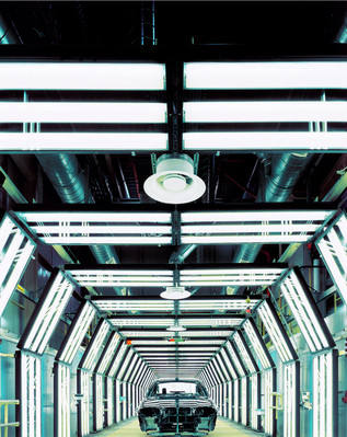 飛利浦照明與寶馬華晨的合作迄今已有十年。在2011年完成的寶馬華晨二期項(xiàng)目中,設(shè)計(jì)團(tuán)隊(duì)結(jié)合流水線的工藝環(huán)境,為沖壓、焊接、油漆、總裝等四大生產(chǎn)環(huán)節(jié)設(shè)計(jì)了全線使用 DALI 控制的照明解決方案。實(shí)際工作中,操作者可以通過(guò)系統(tǒng)終端,對(duì)全廠數(shù)萬(wàn)套 TTX188 與 T5 產(chǎn)品組合進(jìn)行編程、監(jiān)測(cè)、控制,以求較大限度地適合柔性生產(chǎn)流水線的照明要求,同時(shí)較大限度地節(jié)能和利用了電力,滿足了寶馬無(wú)論是對(duì)生產(chǎn)線還是產(chǎn)品都精益求精的專注要求。