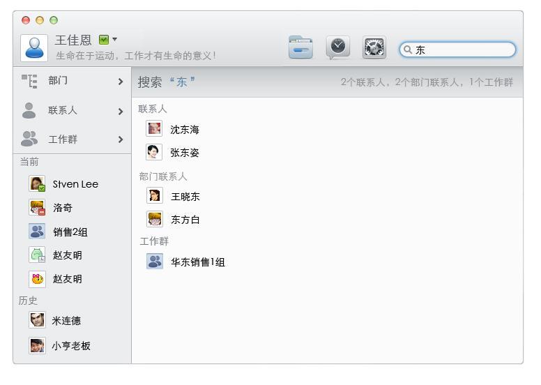 網(wǎng)易即時通在產(chǎn)品設(shè)計上秉承高效、易用、易管理的理念,同時需要兼顧到操作系統(tǒng)本身的特性,此次發(fā)布的網(wǎng)易即時通Mac版也同樣如此。在方便企業(yè)高效溝通方面,網(wǎng)易即時通Mac版進行了多項微創(chuàng)新,如 Mac版的一體化窗口設(shè)計,可以將組織架構(gòu)等列表與聊天窗口緊密結(jié)合,并將“最近聯(lián)系人”分解為“當前”和“歷史”列在主窗口左側(cè),讓用戶能夠更便捷地在窗口上直接定位與自己聯(lián)系過的同事,節(jié)省日常辦公溝通時查找聯(lián)系人的時間;網(wǎng)易即時通還支持聯(lián)系人的全局性搜索,一次搜索即可在多個列表中找到含有搜索關(guān)鍵字的所有聯(lián)系人;網(wǎng)易即時通管理后臺可管理的客戶端范圍不僅僅是較多用的Windows版本,還包含iPad、Mac平臺上的版本以及將要推出的手機版。