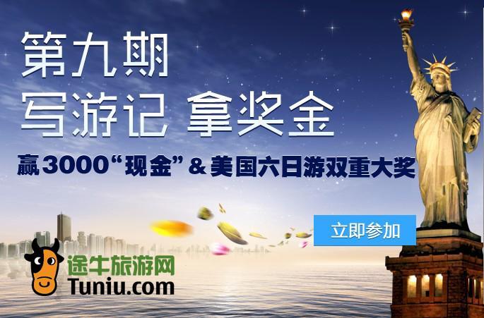 途牛旅游網第九期“寫游記,拿大獎”正在火熱進行中,分設境外游記、國內游記兩個大獎,參與者有機會贏得3000元“現金”和美國游雙重大獎。