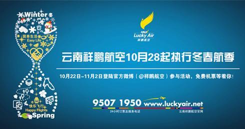 除此之外,云南祥鵬航空還為旅客們準(zhǔn)備了超值免票大禮。10月22日-11月2日,云南祥鵬航空的新浪官方微博(@祥鵬航空 http://e.weibo.com/luckyairline )特別舉辦了關(guān)于2012/13冬春航班換季的有獎(jiǎng)問答活動(dòng),廣大微博用戶們可于該時(shí)間段內(nèi)按照要求參與活動(dòng)并正確回答微博問題,就有機(jī)會(huì)帶走4張免費(fèi)機(jī)票大獎(jiǎng),更有眾多精美小禮品贈(zèng)送。