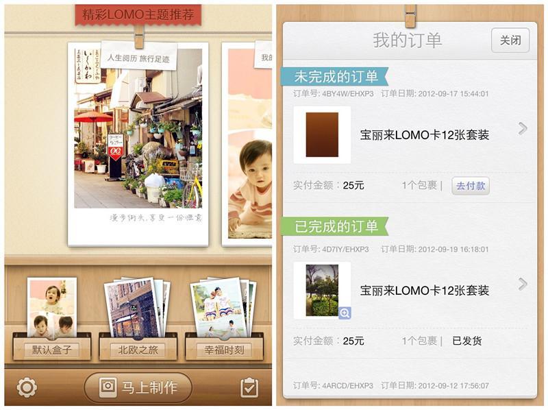 “網易印像拍”這一應用提供了拍照、圖像特效處理、在線個性化定制及線下制作派送一條龍服務的解決方案,用戶可以應用這一軟件完成拍照、編輯圖片,定制以照片為模板的各種個性化產品,如 LOMO 卡、照片書、手機殼等,上傳付費后,“網易印像拍”會進行線下制作并快遞到用戶手中。同時,“網易印像拍”和母站網易印像派實現賬戶互通,在“網易印像拍”客戶端中可同時查看母站上的全部訂單詳情,由此,用戶可以通過客戶端及時獲取訂單的最新狀態。