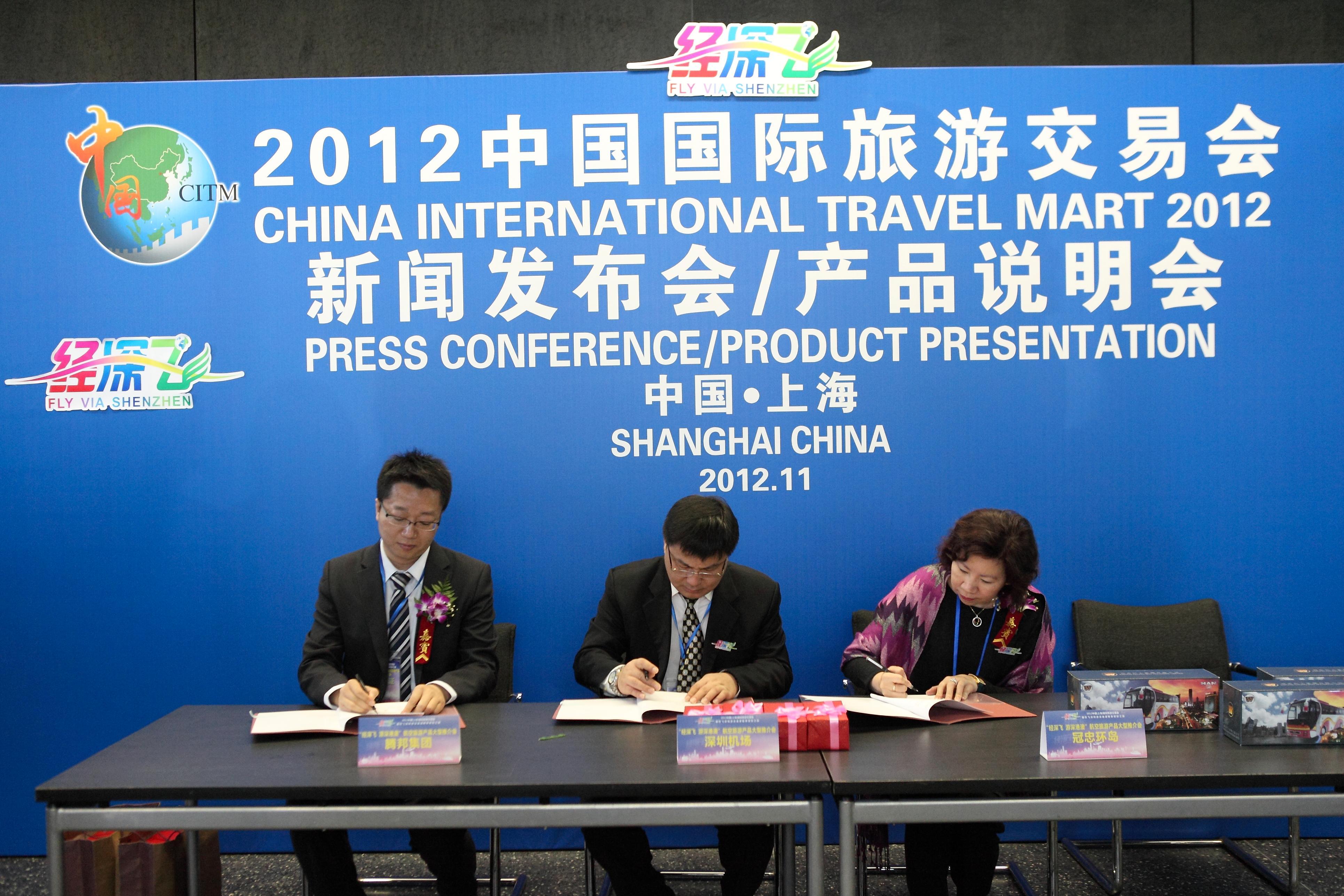 深圳2012年11月30日電 /美通社/ -- 11月15日,2012中國(guó)國(guó)際旅游交易會(huì)在上海舉行,騰邦國(guó)際副總裁張鐸出席會(huì)議,并代表騰邦國(guó)際與東航、廈航、吉祥航、春秋航等航空公司,以及捷旅“房掌柜”、香港天際100、深圳旅游集散中心等一起簽約加盟“經(jīng)深飛”。
