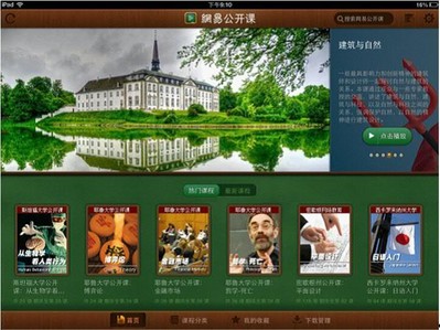 網易公開課是網易于2010年推出的公益項目,旨在為中國用戶帶來優質的教育資源。網易公開課將國內外優秀的大學、論壇的課程和演講,翻譯或制作后免費提供給用戶觀看。截止至2012年12月,網易公開課擁有國際名校公開課、中國大學視頻公開課、TED、可汗學院四大類別共約9000集課程,有擁有iPhone、iPad、Android手機、Android平板四大移動客戶端。2011年,網易公開課率先引入的TED視頻,便已受到用戶的熱烈歡迎。此次網易公開課與TED進行了更深入的合作,將為中國互網網用戶帶來更多更新的優質內容。