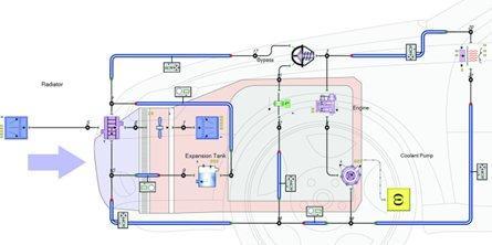 假設我們為一家正在開發新汽車模型的汽車公司工作,但我們希望使用經過多年驗證的可靠發動機。我們必須設計一種新的冷卻系統,它將使用這種發動機,但要求發動機和車廂具備新的管道系統。我有兩種 CFD 分析工具,其中一種能用于分析管道系統,可視為一維(指流體在冷卻液管道中單向流動)分析。另一種三維工具能分析復雜流體流動和熱交換的零部件。所要設計的系統明顯是一維管道系統和三維復雜零部件的結合,我該用哪種 CFD 工具來分析這個系統呢?