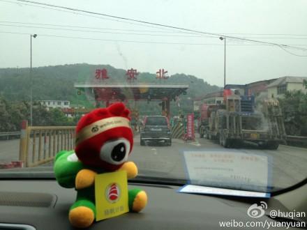 4月21日思源工程、揚帆計劃工作人員一大早乘飛機到達成都,滿載首批救援物資的車隊從成都向雅安進發,爭取把網友的愛心盡快傳遞出去。