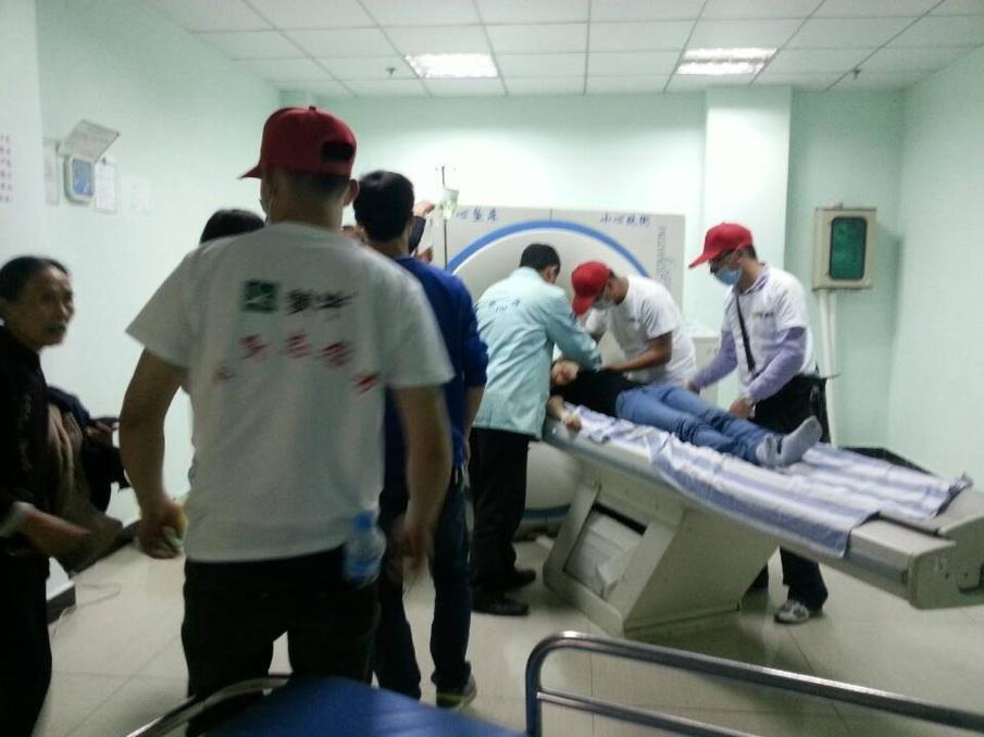 由于接收的傷病員人數較多,許多傷者被臨時安置在醫院外的露天廣場,蒙牛志愿者們主動與醫院協調,承擔起傷者入院治療的協調工作。從20日上午8點多到21日下午,傷病員陸續被志愿者送入醫院內進行檢查、治療。下午兩點多,第一位從寶興搶救出來的傷者也在蒙牛志愿者的協助下被妥善安排治療。