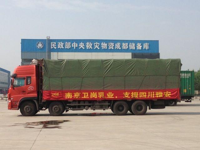 南京2013年5月2日電 /美通社/ -- 在災難發生后的第一時間,南京衛崗乳業有限公司立即組織向雅安災區捐贈5000箱學生奶,4月23日早上12點,滿載著衛崗人愛心的5000箱學生奶裝配完畢,發向四川成都雙流機場。此批學生奶已于4月26日上午抵達災區,由民政部駐雙流機場捐助中心統一調撥,安排發放給各災區人民。衛崗乳業希望能盡到自己的一份社會責任和企業愛心,讓受災的人民感受來自衛崗的溫暖。