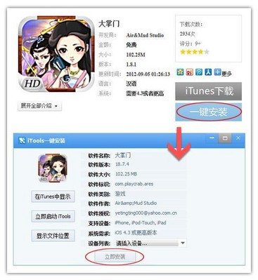 iTools 小白化的管理操作讓果粉使用起來更容易上手。簡單一步就能將游戲軟件安裝到蘋果,管理的圖片、信息等資料文件均可通過鼠標拖拽輕松實現,充分迎合果粉們的使用習慣。