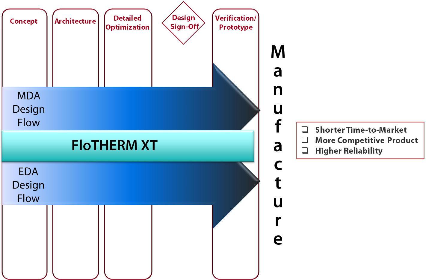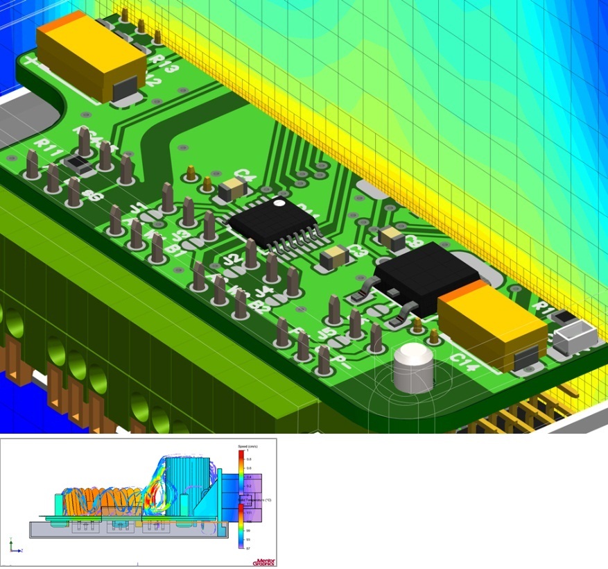 持續該過程直至設計師滿意(他/她得到了很好的熱管理解決方案)為止。與熱相關的零部件正確放置于PCB板上。PCB板正確放置于機箱內。機箱形狀和材料可提供良好的傳導、對流或熱輻射散熱。然后,即可結束概念設計工作,信息傳遞給 MDA 和 EDA 設計師,用于詳細設計。