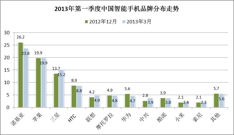 近期備受關(guān)注的三星憑借著多元化的產(chǎn)品線,多價(jià)位的機(jī)型分布,再次成為本季度的較大贏家,上升了1.5個(gè)百分點(diǎn)。Kantar Worldpanel 移動(dòng)通訊消費(fèi)者指數(shù)中國區(qū)客戶總監(jiān)郁毅指出:三星近期發(fā)布的Galaxy S4在市場上取得了前所未有的好成績,作為歷史上首發(fā)月銷售較快的Android手機(jī),三星如果趁勢發(fā)布Galaxy S4的迷你版,勢必完美布局高端市場, 進(jìn)一步挑戰(zhàn)蘋果在中國的地位。
