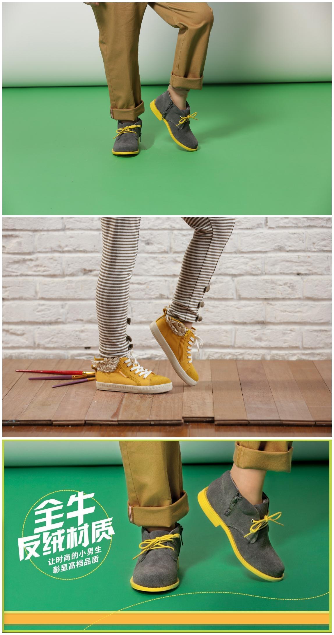 另一款新品采用牛反絨材質,結實的同時也緊跟時尚潮流,自然色系的鞋面及亮色鞋底讓人眼前一亮,突破沉悶感和厚重感,讓孩子酷勁十足。