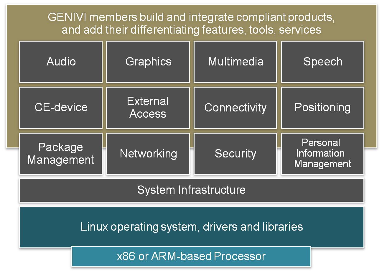 明導國際等聯(lián)盟成員依據(jù)這個規(guī)范來建立車載信息娛樂系統(tǒng)軟件平臺。這些平臺將受到 GENIVI 的審核,如果符合規(guī)范就會被注冊為 GENIVI 合規(guī)產(chǎn)品。盡管有些成員提供的是一個完整的 GENIVI 平臺,但聯(lián)盟其他成員也可以集中精力只研究一個合規(guī)平臺的單個或多個部件。