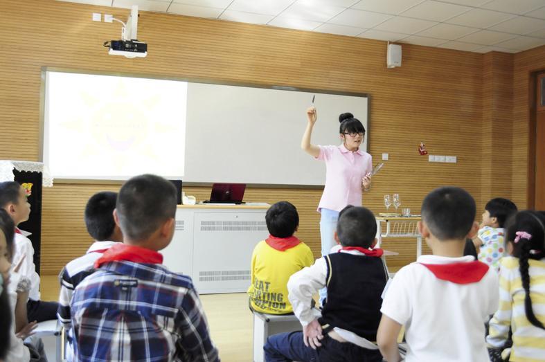 10月10日下午,酒店志愿者還驅車前往位于新區新安街道社區的大橋實驗學校小學部,給二年級的60位同學帶去了一場內容豐富,形象生動的西餐禮儀小講座。現場酒店的關愛老師演講并示范了一些西餐的就餐禮儀,西餐的搭配,并不時的邀請同學上講臺演示。
