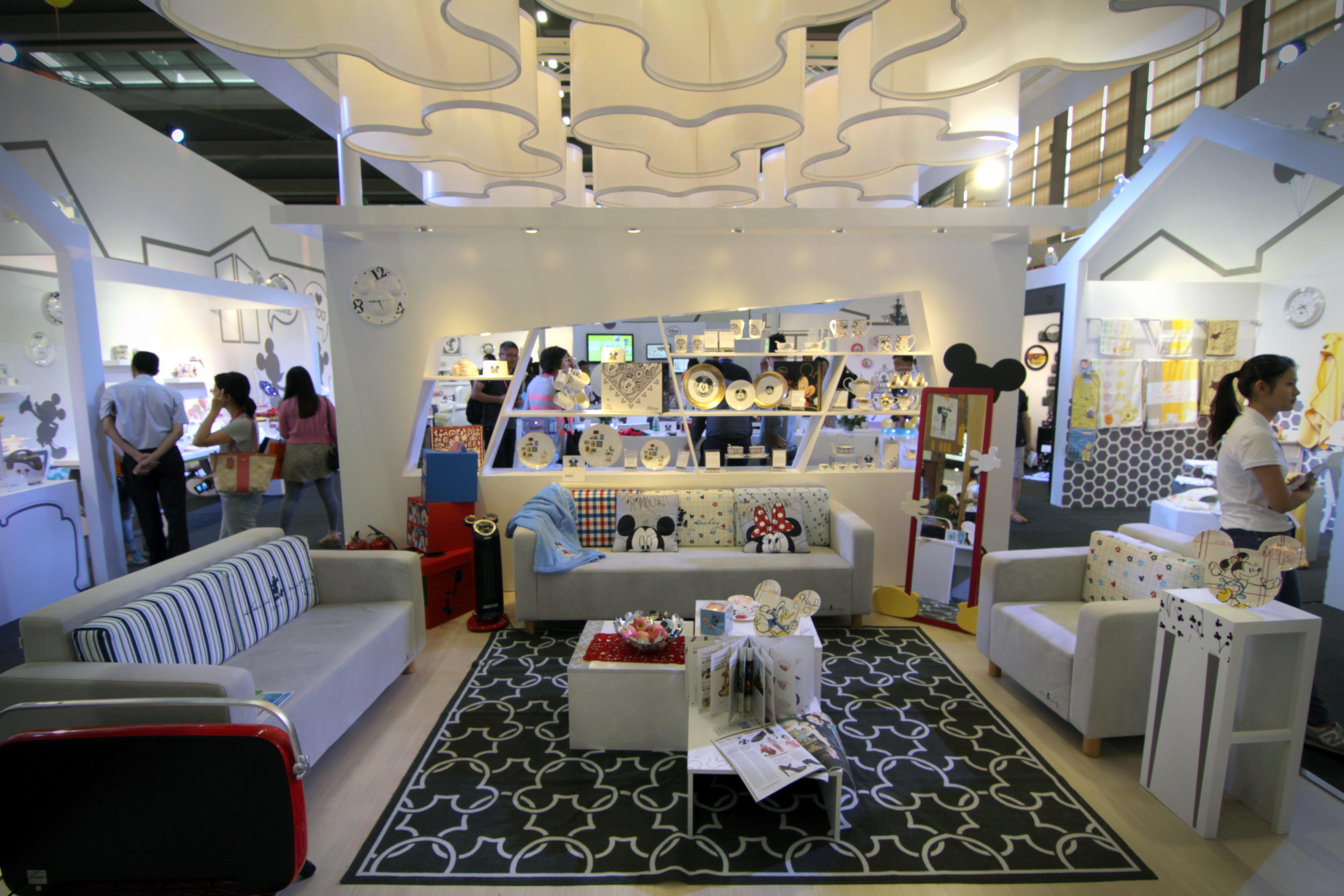 迪士尼家居在此次展覽會上的展位也別具一格。展位呈現了一個中國家庭消費者的家,從起居室到餐廳廚房到臥室等等一應俱全,并展示了如何在不同功能的起居環境里有創意有情趣的運用迪士尼產品來裝點家居。