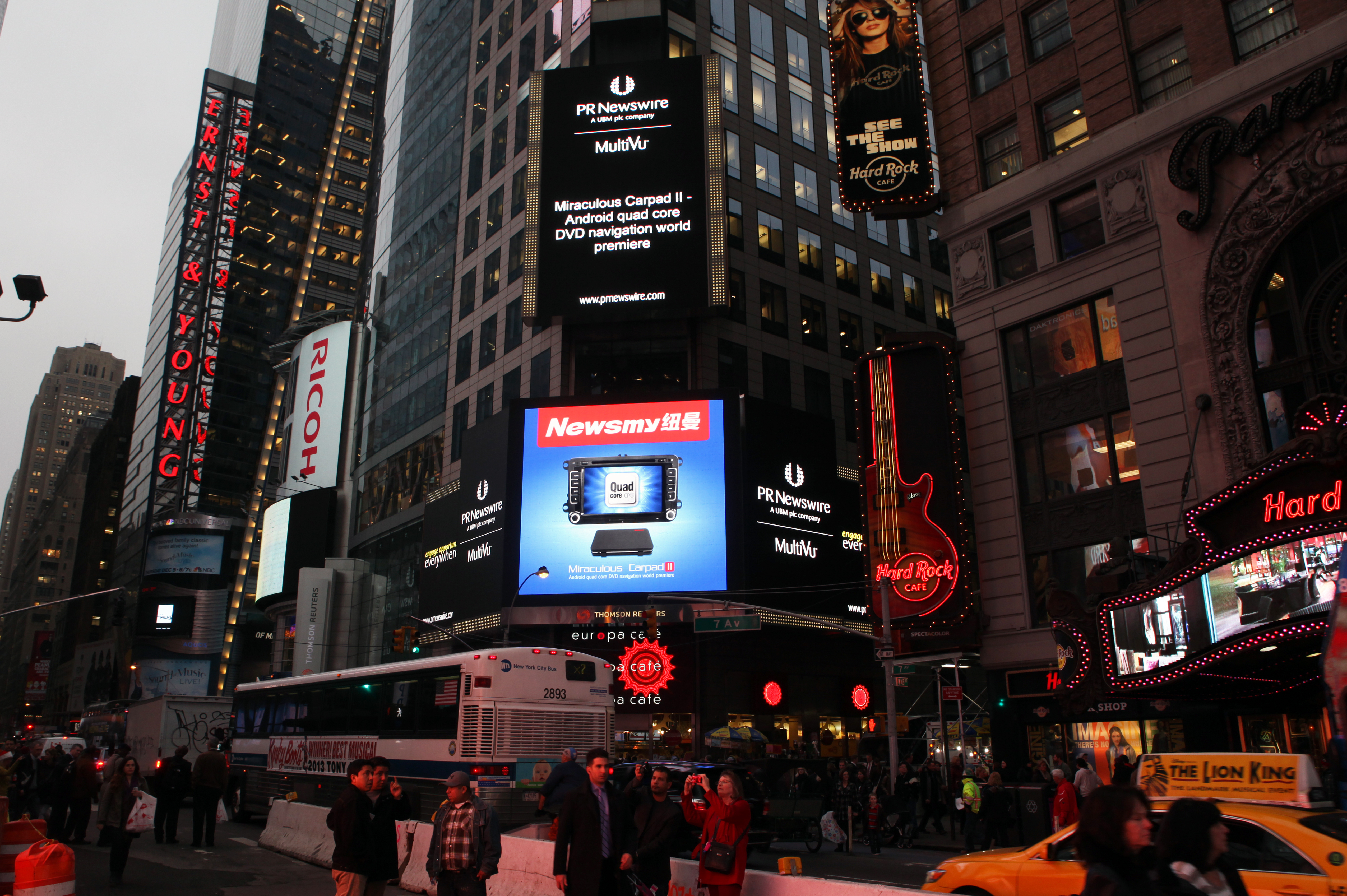 美國東部時間2013年12月5日,“紐曼車PadⅡ -- 四核安卓DVD導航”的產品圖片亮相美國紐約時代廣場,這是中國DVD導航企業首次登上號稱“世界十字路口”的美國紐約時代廣場的大屏幕。